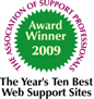 The 10 winning sites will be profiled in a book titled, "The Ten Best Web Support Sites of 2009," which will be published by the ASP in July 2009.